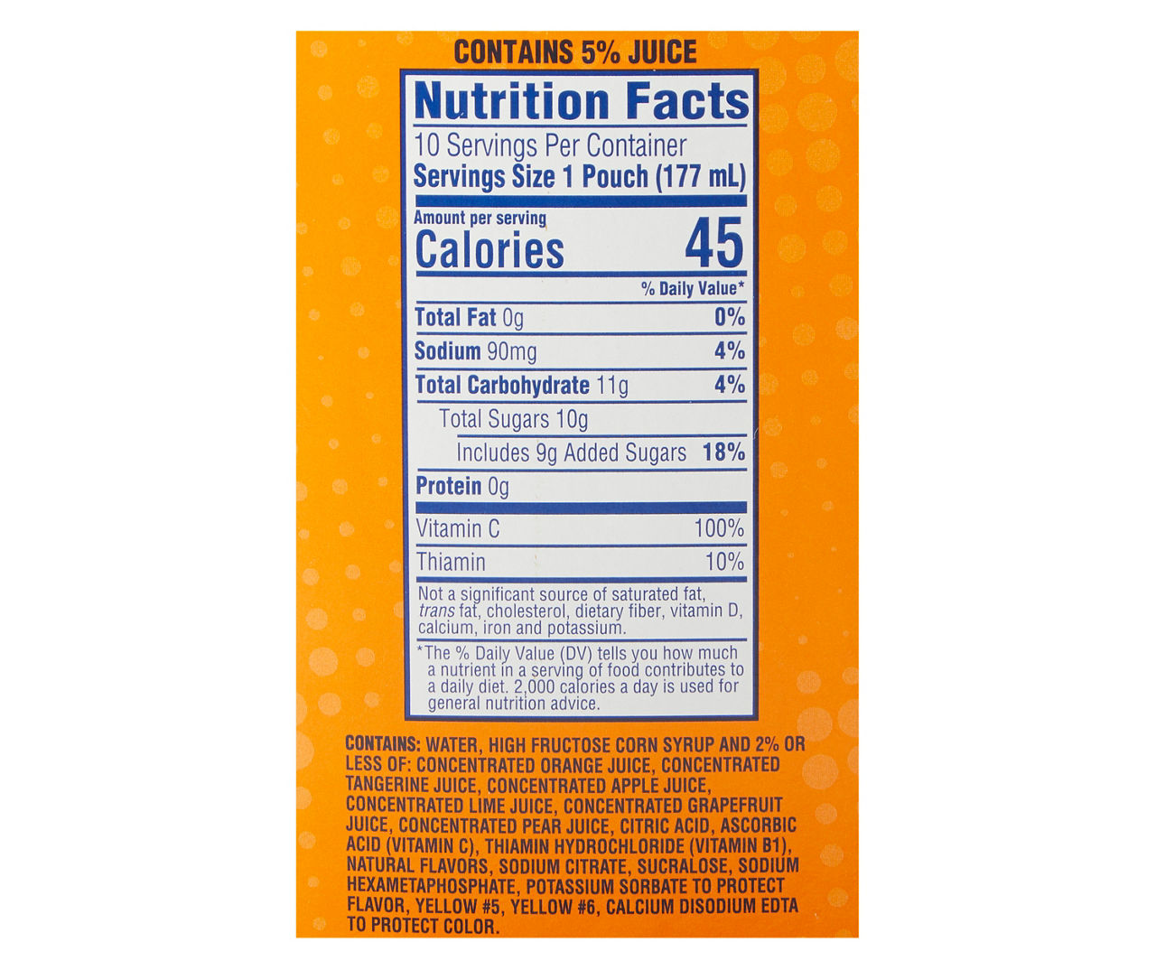 Sunny D Tangy Original Orange Flavored Citrus Punch Sunny D Tangy Original Orange Flavored Citrus Punch ; Total Fat 0g, 0% ; Sodium 160mg, 7% ; Total Carbohydrate 16g, 6% ; Total Sugars 4g ; Added Sugars 12g, 24% ...