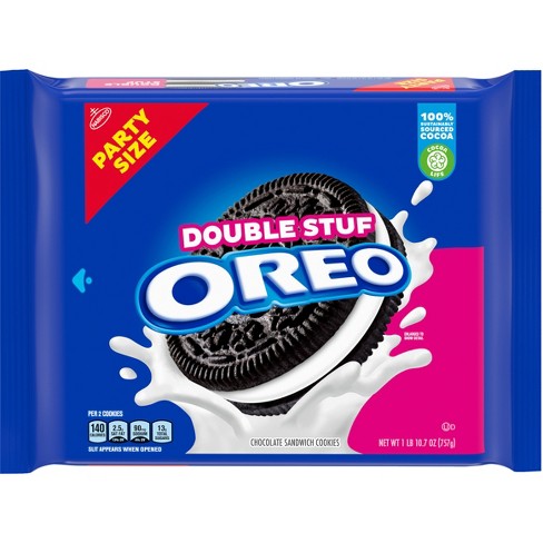 Nabisco Oreo Double Stuf Chocolate Sandwich Cookies Family Size 20 oz. $4.41 ($0.23/oz) Icon details. Product description. Take a delicious break with Oreo Double Stuf Chocolate Sandwich Cookies, a new way to enjoy the favorite of millions around the world since 1912. Supremely dunkable, Oreo Double Stuf Cookies sandwich even more rich creme filling between the bold taste of two chocolate wafers--making ...