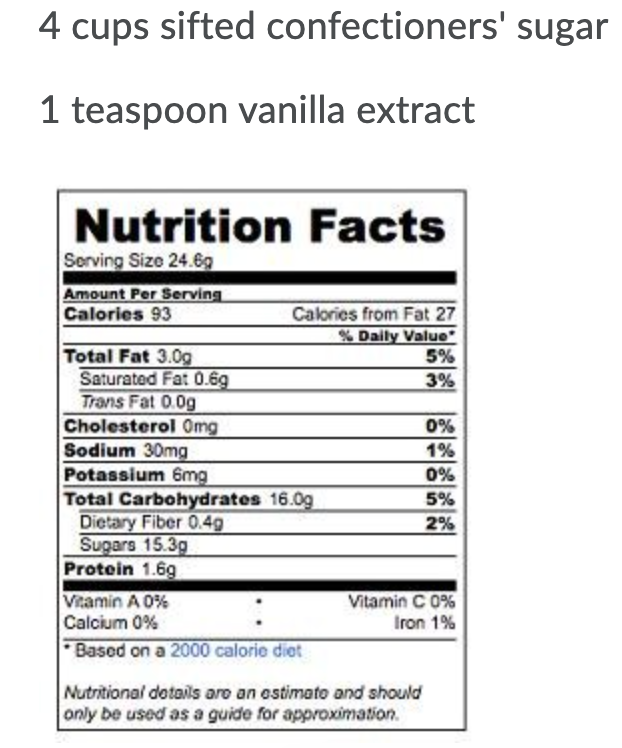 40 vanilla extract nutrition label