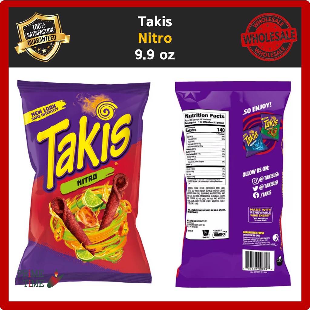 Amazon.com: takis powder Discover more about the small businesses partnering with Amazon and Amazon’s commitment to empowering them. ... BIGS Takis Fuego Sunflower Seeds 3.63 oz Bag (Pack of 3) 3.63 Ounce (Pack of 3) 4.6 out of 5 stars 485. ... Nutrition Facts Per Serving. Fat Free (<0.5g) Low Fat (<3g) Free of Saturated Fat (<0.5g) Takis, Fuego Nutrition Facts - Eat This Much For a Serving Size of 1 bag (90g) ; How many calories are in Takis, Fuego? Amount of calories in Takis, Fuego: Calories 450, Calories from Fat 225 (50%) ; % Daily ...