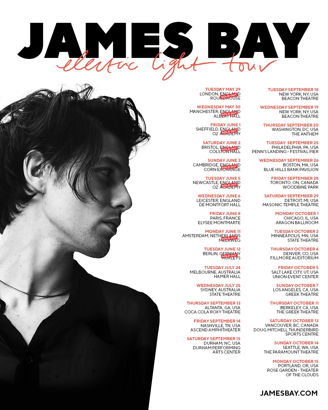James Bay (singer) - Wikipedia James Michael Bay (born 4 September 1990) is an English singer-songwriter and guitarist. In 2014, he released his single "Hold Back the River", which was certified platinum, before releasing his debut studio album Chaos and the Calm (2014).The album went to number one in the UK and number 15 in the US. In February 2015, Bay received the Brit Awards "Critics' Choice" award. James Bay - Music Publishing | Concord An hour or so drive outside of London, at the point where the city's vast swathes of suburbs become the green fields of the countryside, you'll find Hitchin, home of the Rhythms of the Worlds Festival and hometown of 23-year-old singer-songwriter James Bay.It's this kind of environment that has the habit of breeding the very best kind of British vocalist, singers and songwriters grounded ... Republic Relaunches Mercury Records With Post Malone, James Bay Republic Records is relaunching Mercury Records as an imprint in the U.S., the label announced today ... most notably Post Malone — whom Arnold signed to Republic in 2015 — and James Bay, whom ... James Bay | Retrophonic Records By Record Label. 4AD; Blue Note; Capitol Records; Chesky Records; Columbia; Decca; Deutsche Grammophon; Erased Tapes Records; Flying Nun Records; Geffen Records; Kitchen Label; ... James Bay - The Dark Of The Morning (EP) $ 23.90; Back Order James Bay - Chaos and the Calm $ 45.40; James Bay - Electric Light $ 38.00 Add to cart;