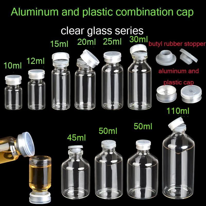 10 ml 12 ml 15 ml 25 ml 30 ml 500 set/lot 20 gigi cap botol Injeksi obat kaca kecil botol botol uji Eksperimental