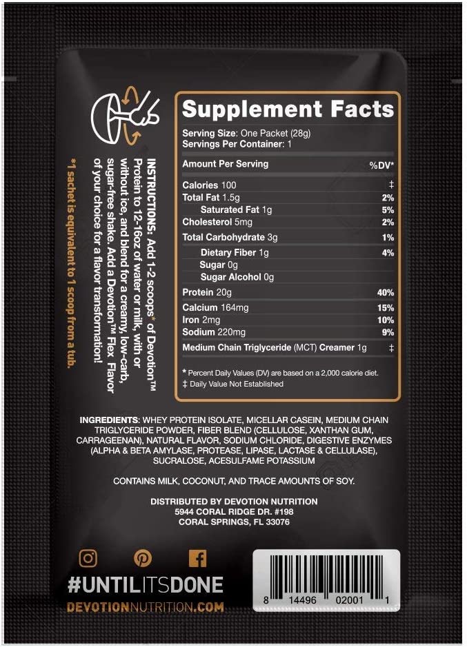 Devotion Nutrition Protein Powder Blend | Gluten Free, Keto Friendly, No Added Sugars | 1g MCT | 20g Whey & Micellar Protein | 12 Single Serving ...