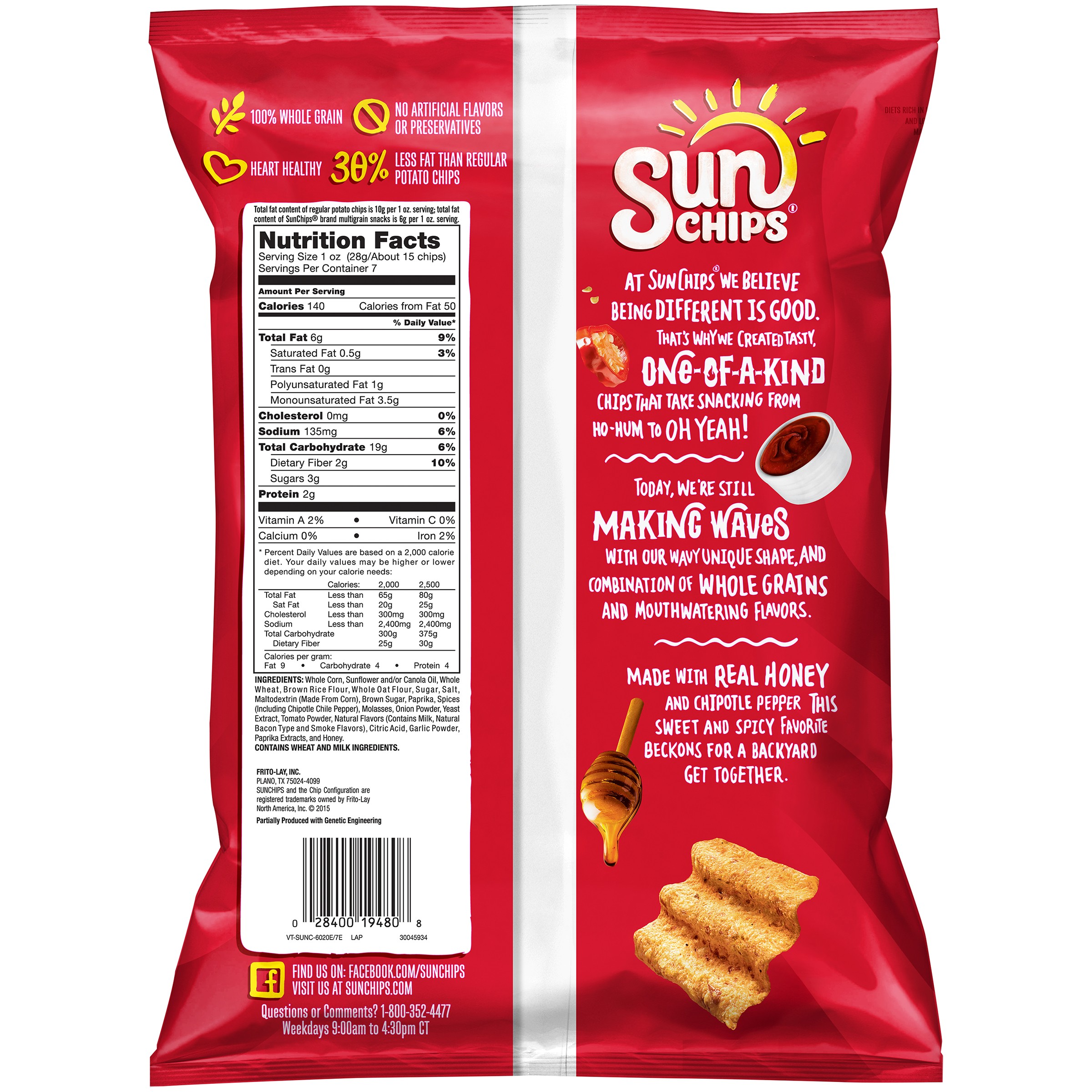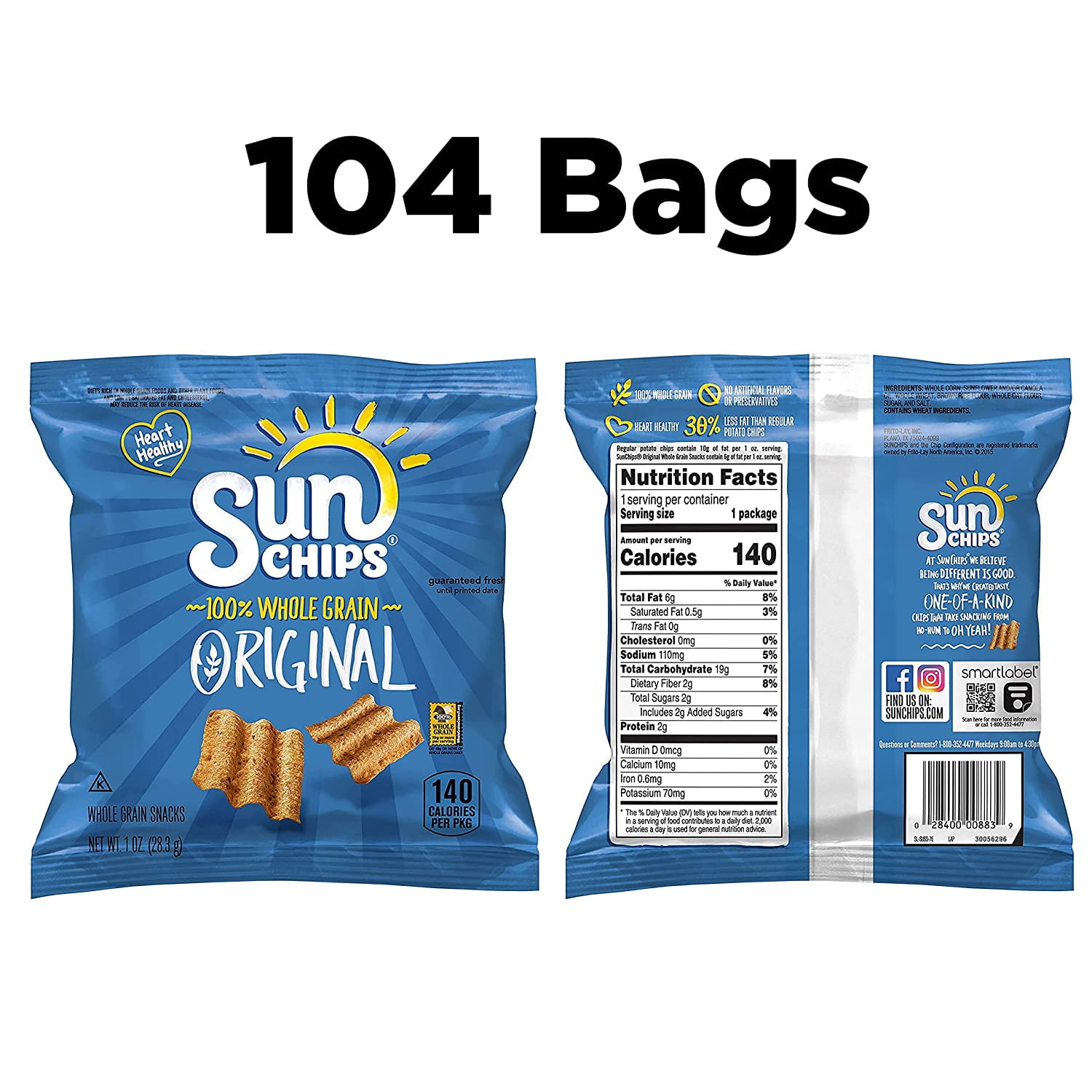 SunChips Whole Grain Snacks, Original, 7 oz - Walmart.com SUNCHIPS snacks are wavy, ripple-y squares full of whole-grain goodness (14-19g of whole grains per serving). Grab a bag of SUNCHIPS whole grain snacks in your favorite flavor, and tell your taste buds to meet you at the corner of delicious and wholesome. Original flavor 100% whole grain Heart healthy No artificial flavors or preservatives